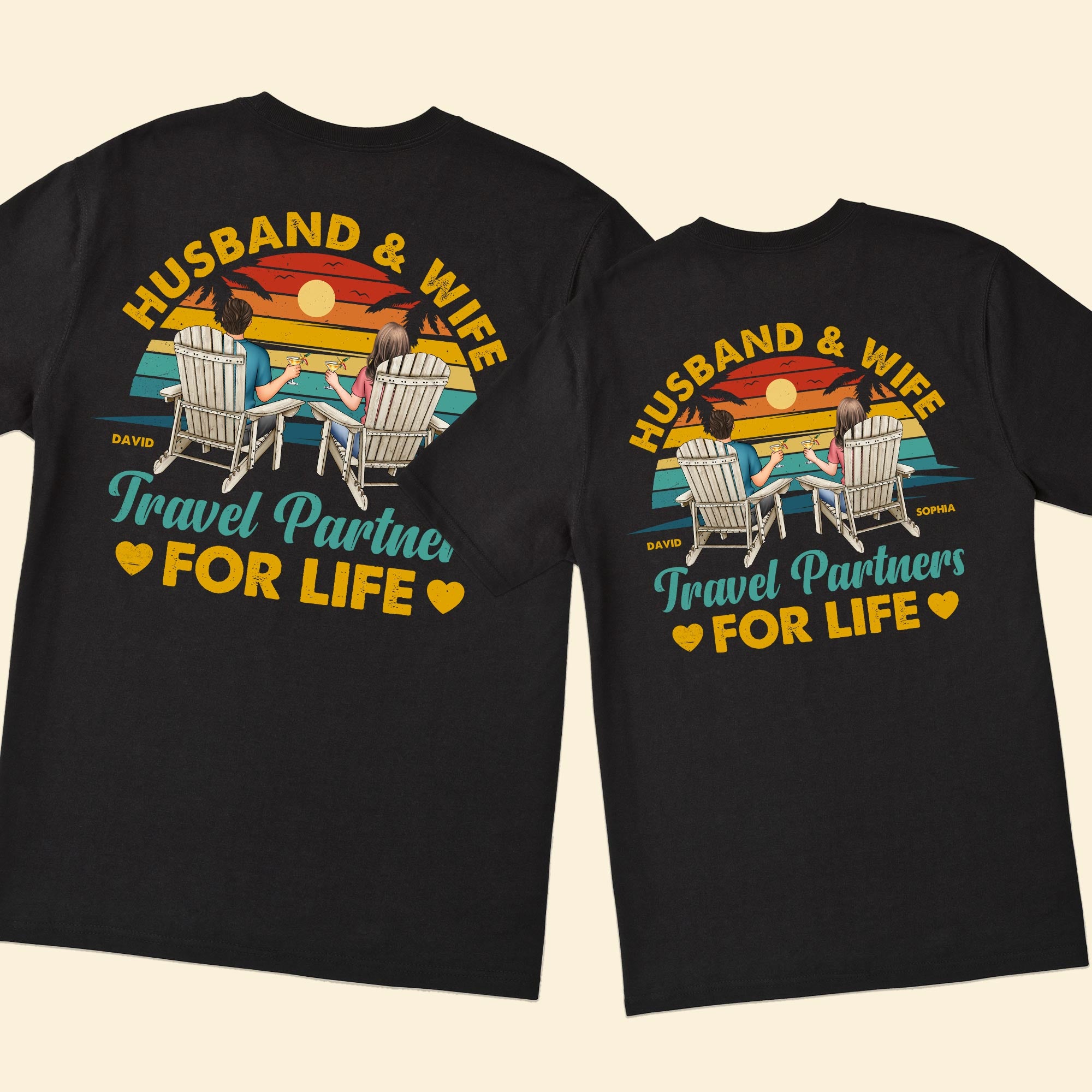Travel Partners For Life – Personalized Couple Matching Back Printed Shirts